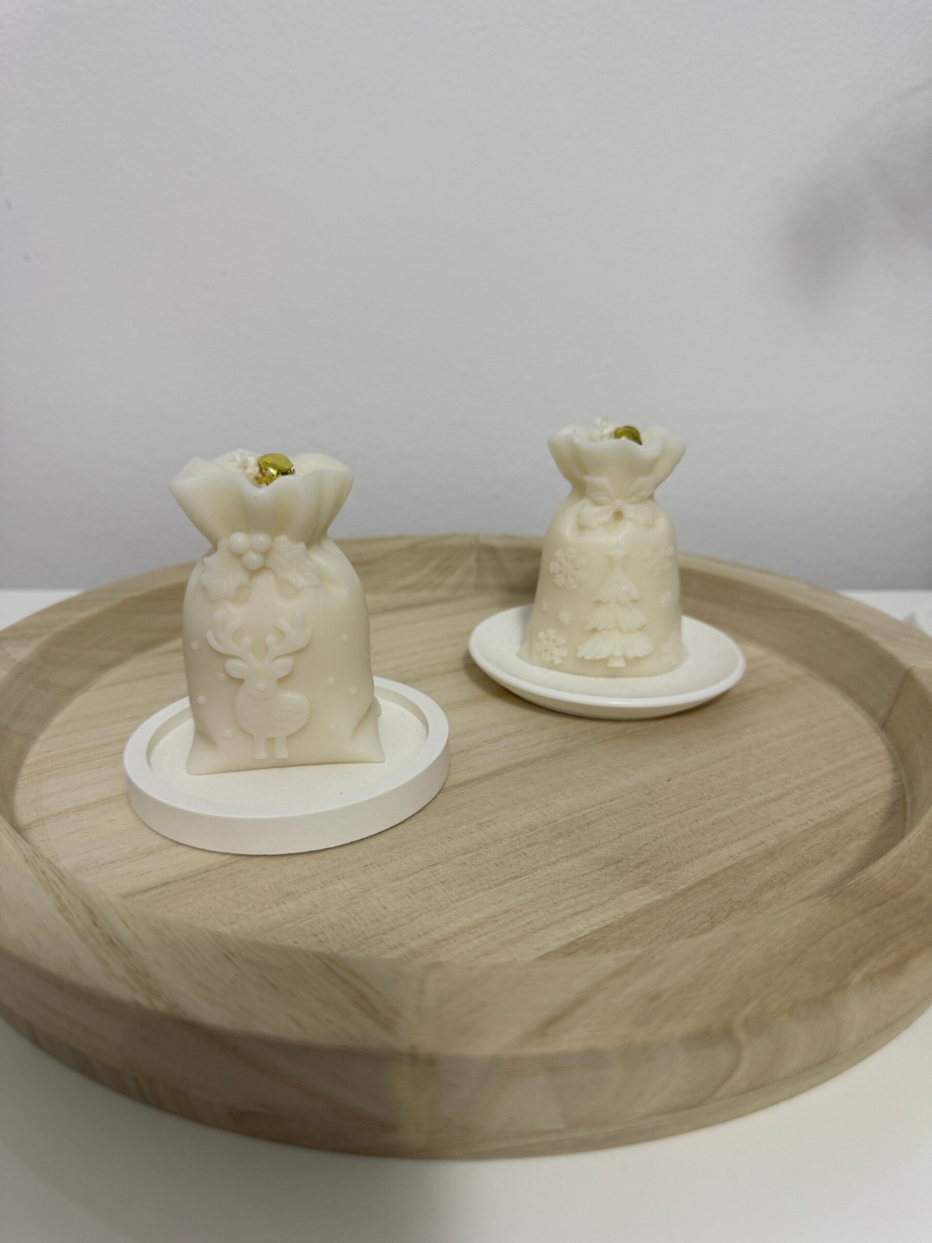 Candela Sacco di Babbo Natale in cera di oliva con elegante piattino.