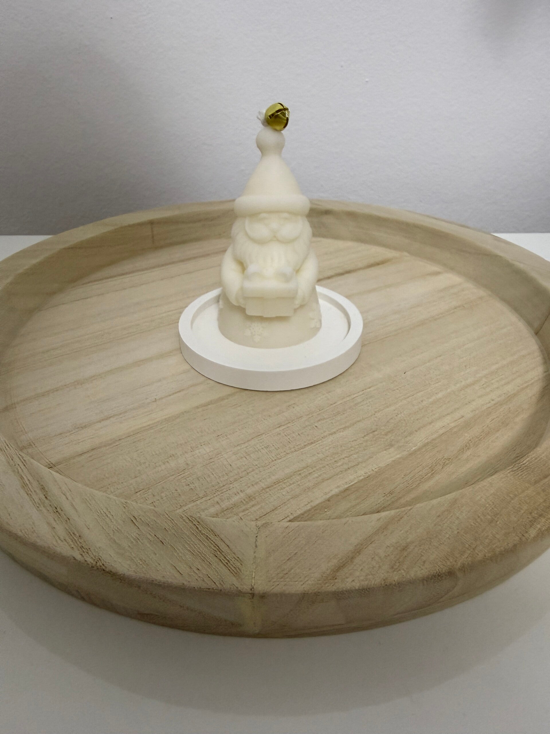 Candela Babbo Natale in cera di oliva con elegante piattino.